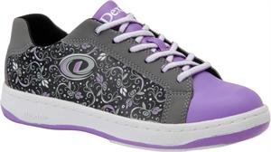 Delicate floral detailing brings a feminine touch to the Dexter® Liana women's bowling shoe. It's constructed with a synthetic Blucher upper, non-marking rubber cupsole, defined heel, and microfiber slide soles.